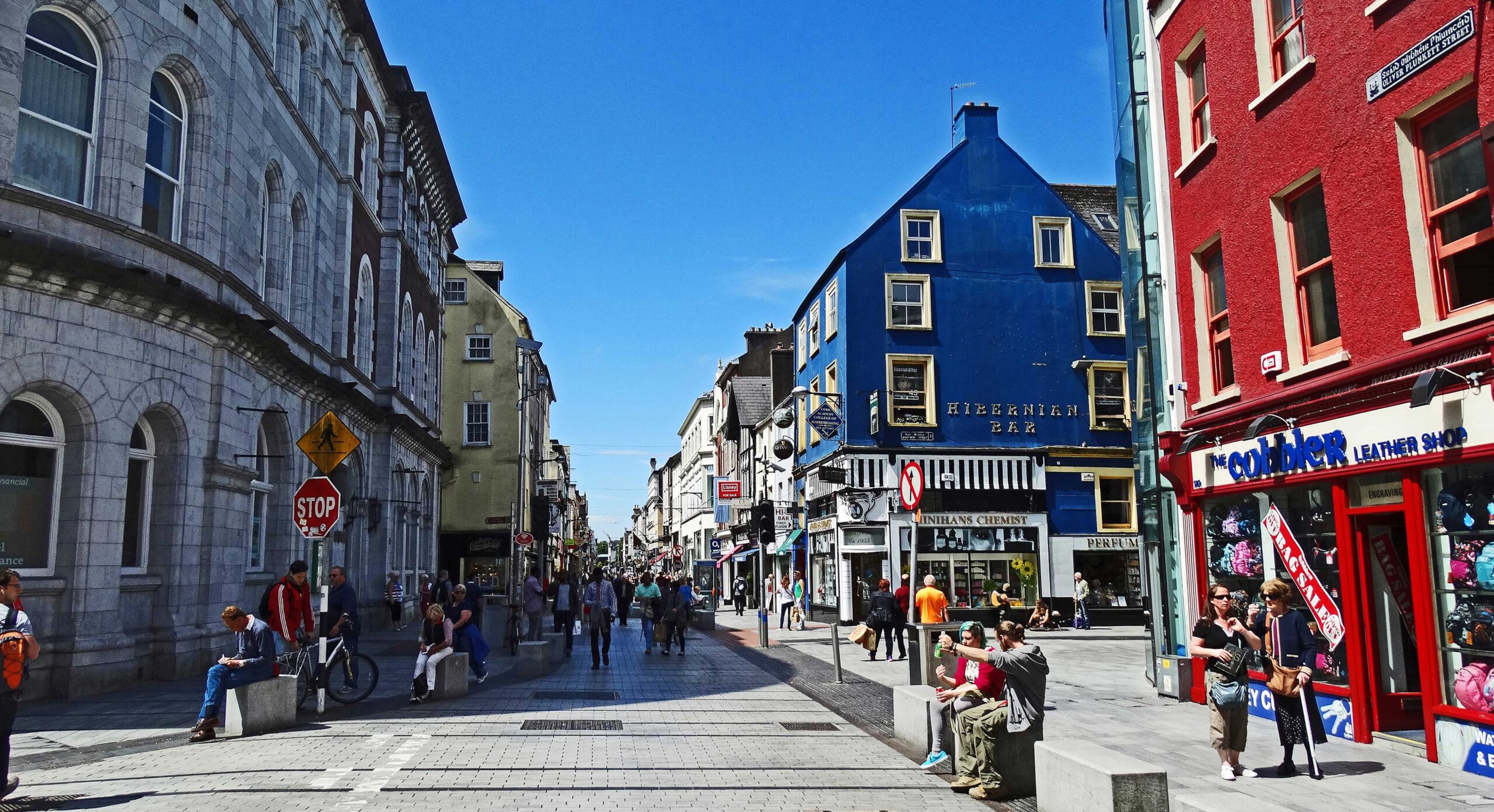 La Grand Parade e St.Patrick’s Street, vivaci arterie centrali sulle quali si trovano il maestoso National Monument, in memoria dei caduti d’Irlanda tra il 1798 e il 1867, il Bishop Lucey Park, che conserva parti delle mura cittadine e dell’antico mercato dei cereali, il seicentesco English Market, mercato coperto di frutta e verdura.