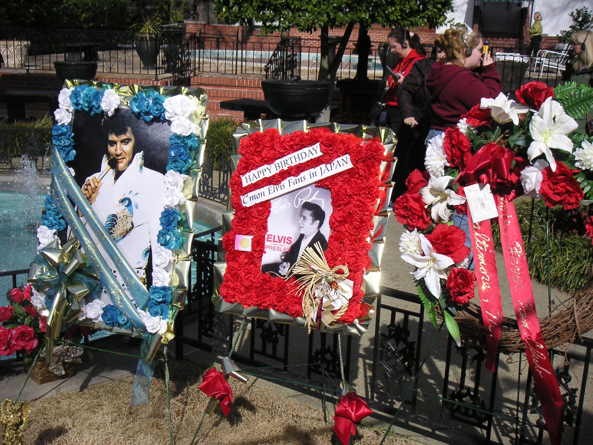 En fin de visite, vient le moment d’honorer la tombe d’Elvis, toujours ornée de fleurs et de lettres laissées par ses fans.