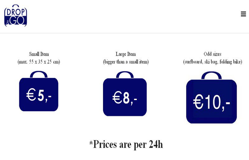 De tarieven zijn bijvoorbeeld 5 euro voor 24 uur voor kleine bagage (max. 55 x 35 x 25 cm, zoals een handbagagekoffer); 8 euro voor middelgrote bagage en maximaal 10 euro voor grotere items (zoals inklapbare fietsen, skitassen of surfplanken).