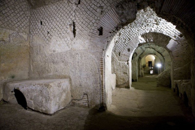 A true archaeological area now extends about 10 meters deep beneath the church of San Lorenzo Maggiore. Inside the eighteenth-century cloister, part of the macellum, the Roman market, dating to the second half of the 1st century AD, is visible: it consisted of a rectangular porticoed space, on which shops opened, and an uncovered courtyard paved with mosaics, at the center of which was placed a tholos, a circular building intended for the sale of food. However, it is the lower excavation levels that clarify the complex structure of the entire area.