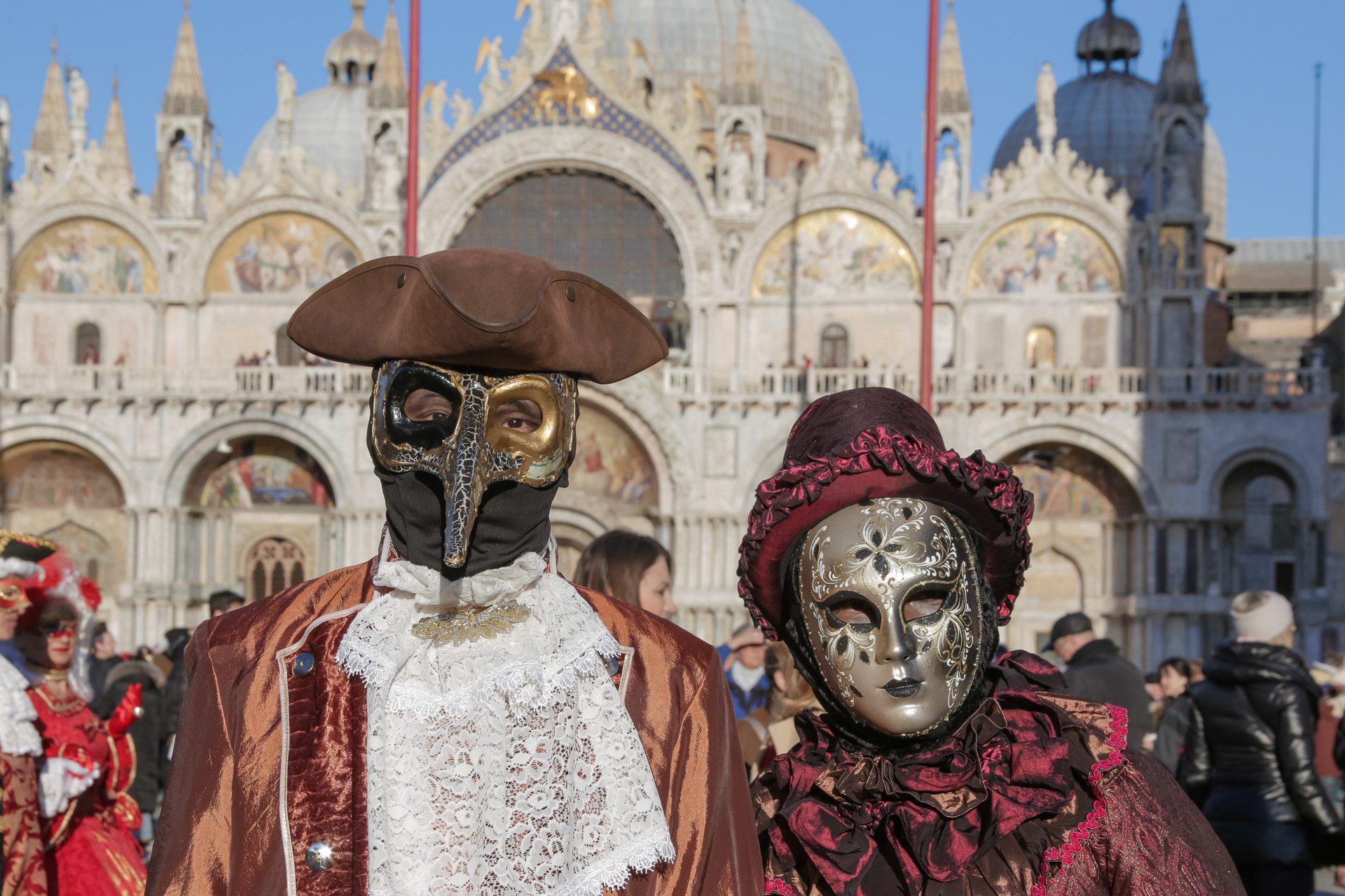 The revival of this millennial tradition comes almost two centuries later, in 1979, on the initiative of the Municipality of Venice and some city associations. Masks, costumes, parades, dances: the Venice Carnival, now celebrated every year in the ten days preceding Lent, is largely inspired by the Baroque atmospheres of the 17th century, as well as the splendour of the 18th century. Often characterized and dedicated to an underlying theme, the new editions of the Carnival have also been enriched with numerous events inspired by the history and traditions of the lagoon city, such as the Feast of the Marie and the Flight of the Angel.