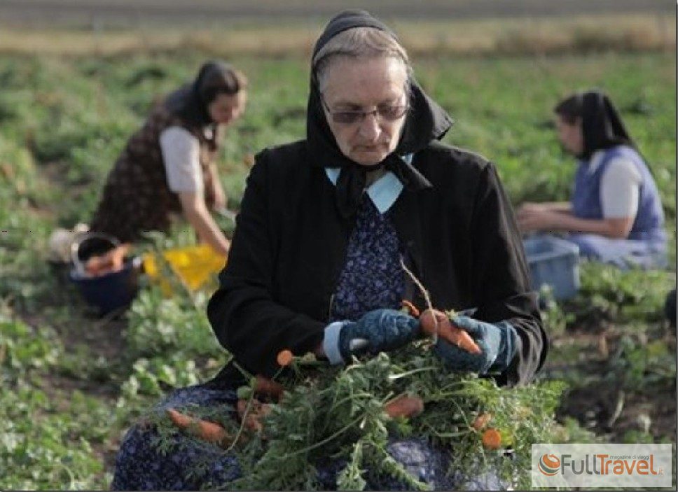 The Hutterites live in isolated areas, are very rarely affected by diseases, and the pigs raised appear to be absolutely natural and happy. They also produce chickens, eggs, beef, and lamb in traditional, family-style methods, just as the first settlers did. Small and modest means less disease and fewer problems. Contrary to what one might think, and compared to other very conservative religious communities, the Hutterites use advanced technologies, from tractors with GPS to smartphones and tablets. The women of the colony do not work in the fields but work in the colony kitchen gardens.