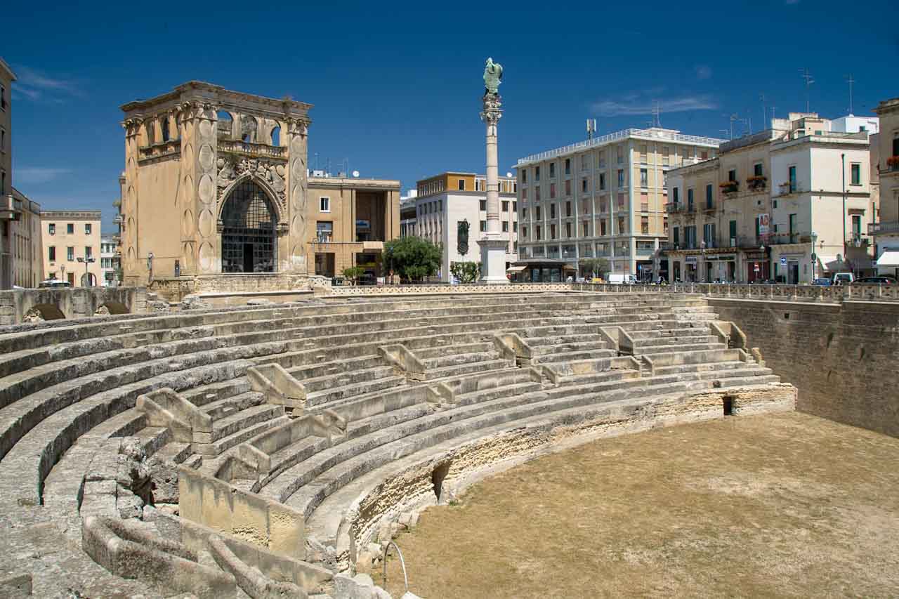 Another focal point is Piazza Sant’Oronzo, with the column on which stands the statue of the saint in the act of blessing passersby. The square is largely occupied by the Amphitheater built during the time of Emperor Augustus and brought to light only at the beginning of the 20th century.
