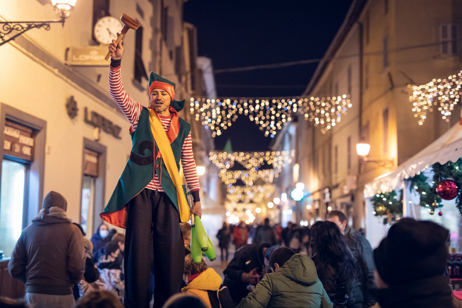 ‘O Natal mais em Fano, uma vila natalina com mercados tradicionais junto a uma vasta programação de eventos e espetáculos que culminam em 6 de janeiro com os mercados da Befana.