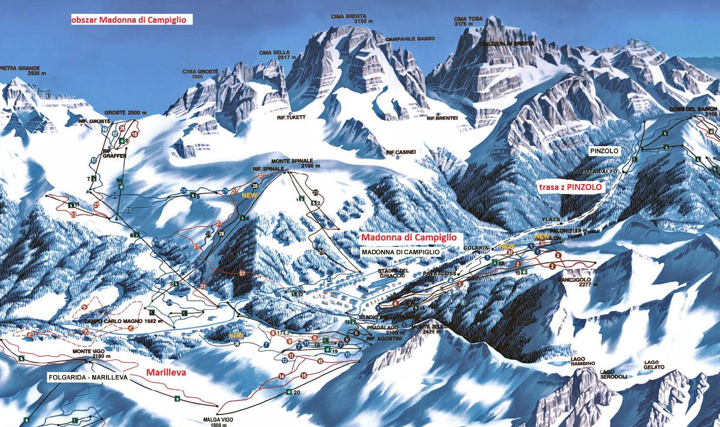 Em Marilleva não se esquia só durante o dia, mas também é possível desfrutar do esqui noturno; outra atração é o patinação natural em Marilleva 900, além da oferta de inúmeras pistas para todos os níveis: desde rotas recomendadas para iniciantes até as pistas negras mais desafiadoras. As instalações são de ponta e, entre Marilleva, Madonna di Campiglio e Folgarida, as disciplinas de esqui nórdico e esportes específicos, como nordic walking e escalada no gelo, são muito populares.