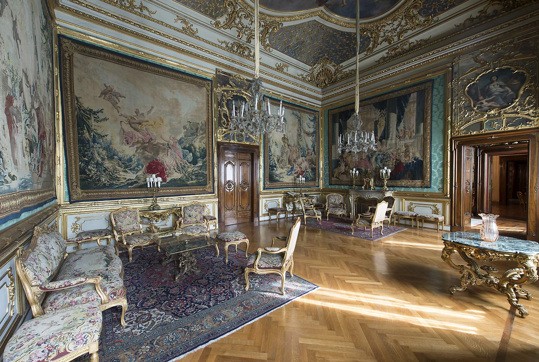 Scalone d’Onore, Anticamera del Salone delle Feste, Galleria dei Busti, Sala delle Stagioni, Salone dei Corazzieri, affaccio alla Cappella Paolina, Prima Sala di Rappresentanza, Sala delle Virtù, Sala del Diluvio, Sala delle Logge, Sala dei Bussolanti, Sala del Balcone, Salottino San Giovanni, Sala Gialla, Sala di Augusto, Sala degli Ambasciatori, Sala d’Ercole, Sala degli Scrigni, Passaggetto di Urbano VIII, Sala di Druso, Studio del Presidente, Sala degli Arazzi di Lille, Salottino Napoleonico, affaccio alla Biblioteca del Piffetti, Sala del Bronzino, Loggia d’Onore, Sala delle Api, Sala delle Dame, Sala della Vittoria, Sala della Pace, Sala della Musica, Sala dello Zodiaco, Sala delle Fabbriche di Paolo V, Sala degli Arazzi, Sala degli Specchi, Salone delle Feste.