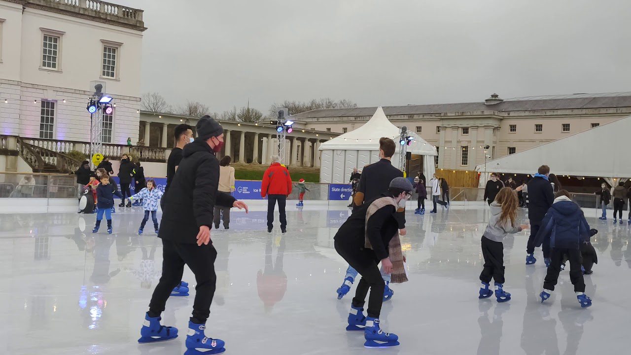 在皇后宫滑冰是伦敦圣诞日历上的传统活动。这条滑冰场被认为是伦敦最好的,南望格林威治公园,北望金丝雀码头的闪烁灯光。