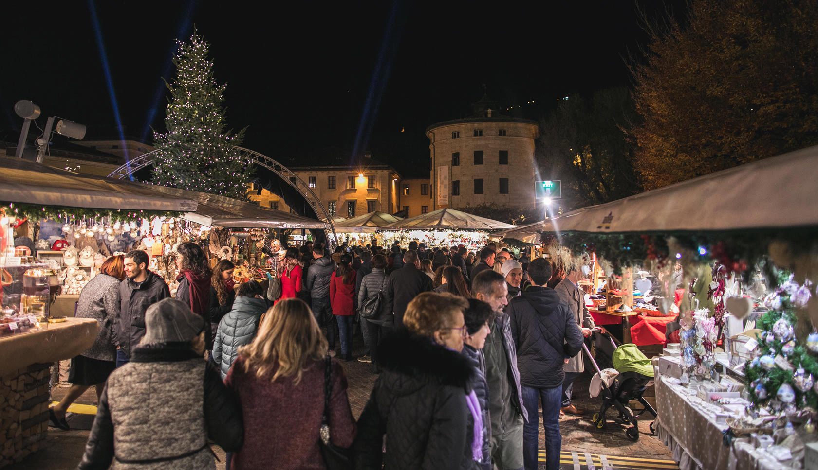 特伦托圣诞集市位于城市两大历史广场:费耶拉广场与切萨雷·巴蒂斯蒂广场,2018年11月24日至2019年1月6日开放。周一至周四开放时间为10:00至19:30,周五、周六、周日及节假日为10:00至20:00。圣诞节当天闭市。2018年12月26日及2019年1月1日开放时间为12:00至20:00。