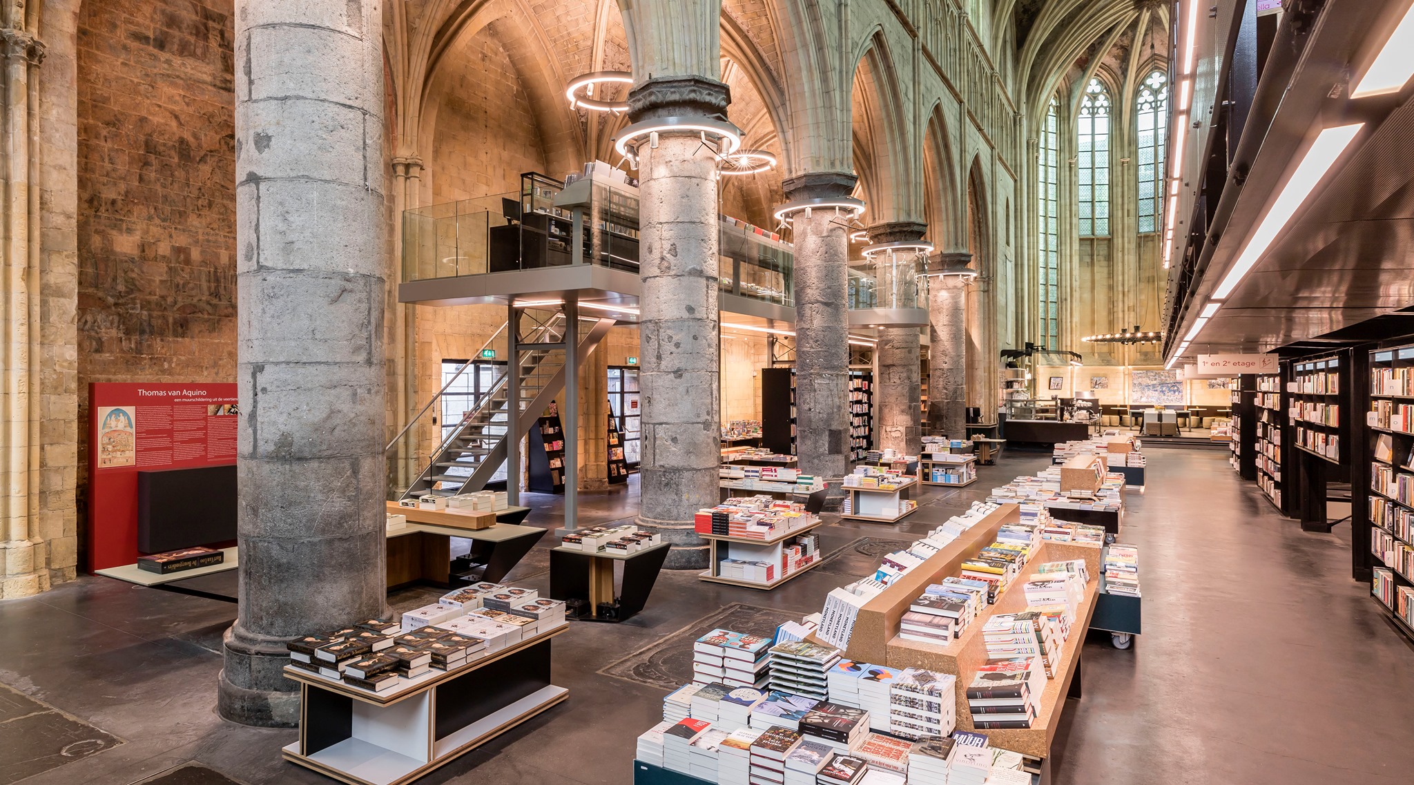 尽管经过改造,教堂的许多原始元素得到了保留和提升。13世纪的天花板壁画被精心修复,现在可以从书店的高层看到。古老的祭坛陈列着精选的珍贵图书,而唱诗班席则被改造成一个温馨的咖啡馆,供人们一边读书一边享用咖啡。Boekhandel Dominicanen的藏书内容丰富多样,涵盖多种语言,范围从小说到散文,从艺术到地方历史。特别设有一个专区,专注于马斯特里赫特及周边地区的历史书籍,为访客提供深入了解本地的机会。